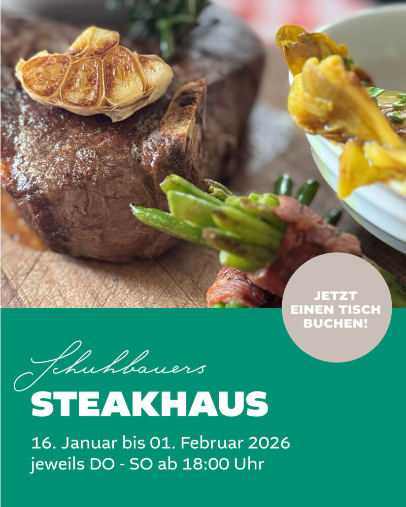 Im Januar verwandeln wir unseren Oberwirt wieder einmal in Schuhbauers Steakhaus und bieten Ihnen während unserer Steak-Wochen sensationelle Cuts vom Rind und Schwein.